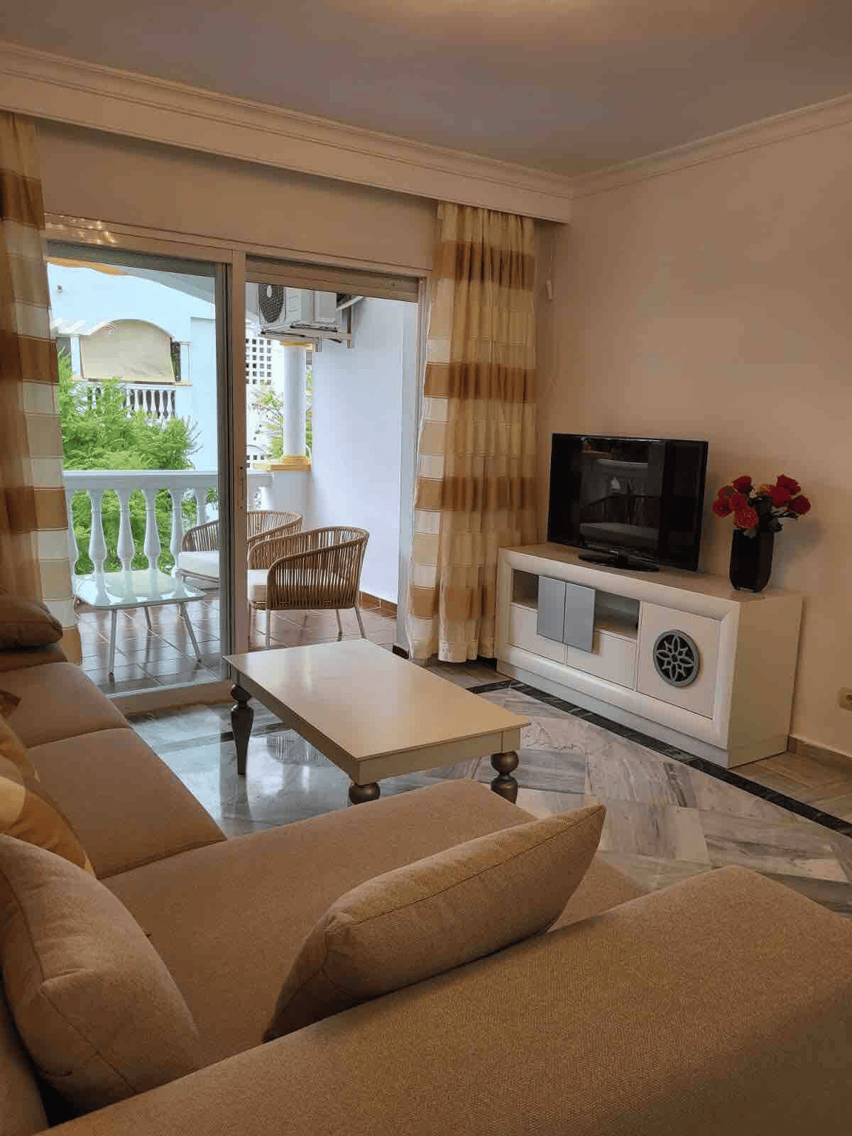 Cozy 2 bedrooms apartment in prestigious Golden Mile Marbella is situated on walking distance of Casablanca beach and all amenities like restaurantes , bars, supermakets, bus stops, farmacy. The complex has swimming pool, security 24 hours, padel court and parking. Apartment consists of 2 bedrooms, 2 bathrooms, spacious salon with access to the terrace , fully equiped kitchen.