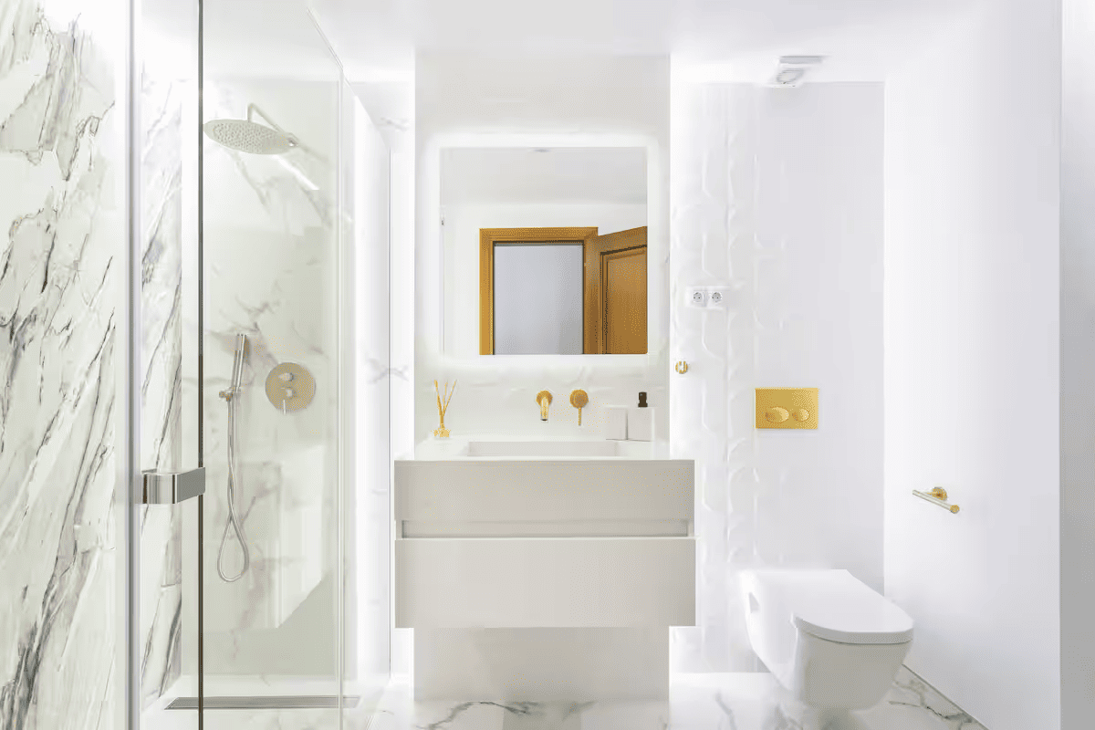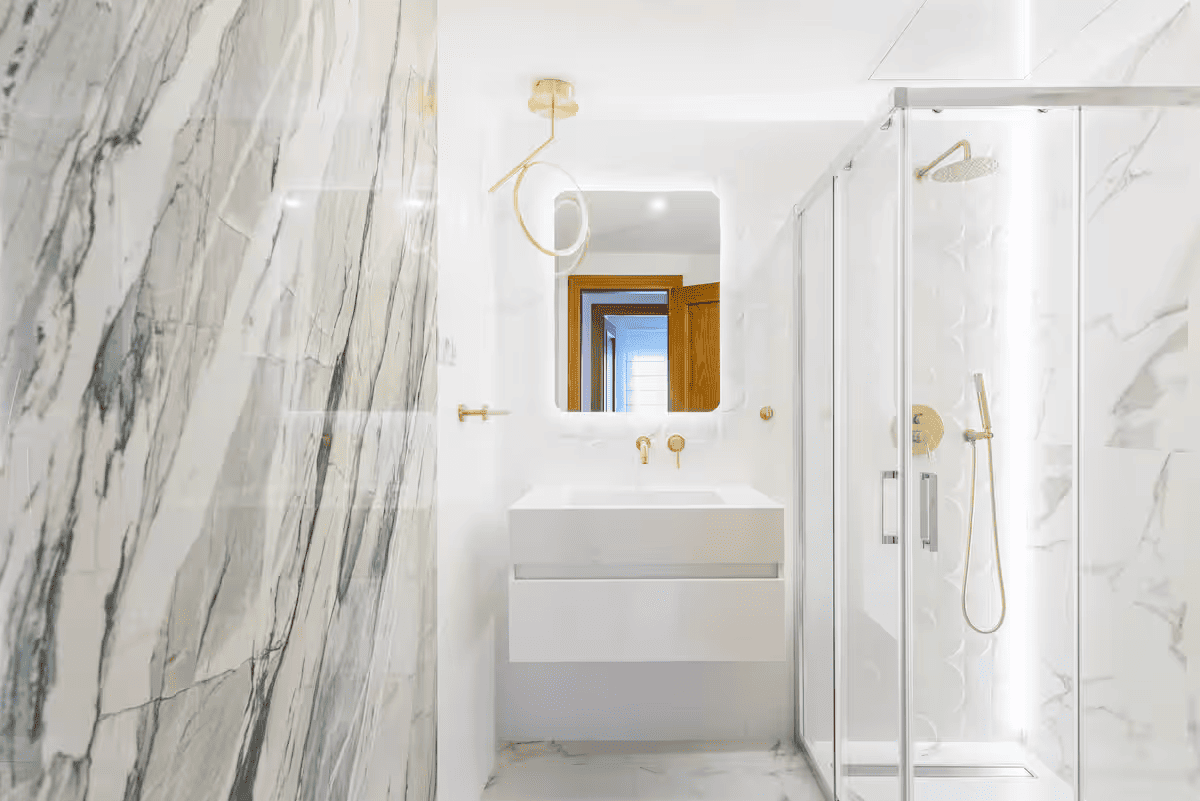 Fab showers. Good hairdryer and there was straightening irons! Towels and linens of good quality. Beautiful secure gated walk to beach. Antigua restaurant was our fave. Barraka the other end. Both walkable along well kept golden beach path. We had a prob with a/c and Julia arranged maintenance on a sat and was fixed. You do hear people above walking around. Also toilet flushing at night. On the whole it is quiet
