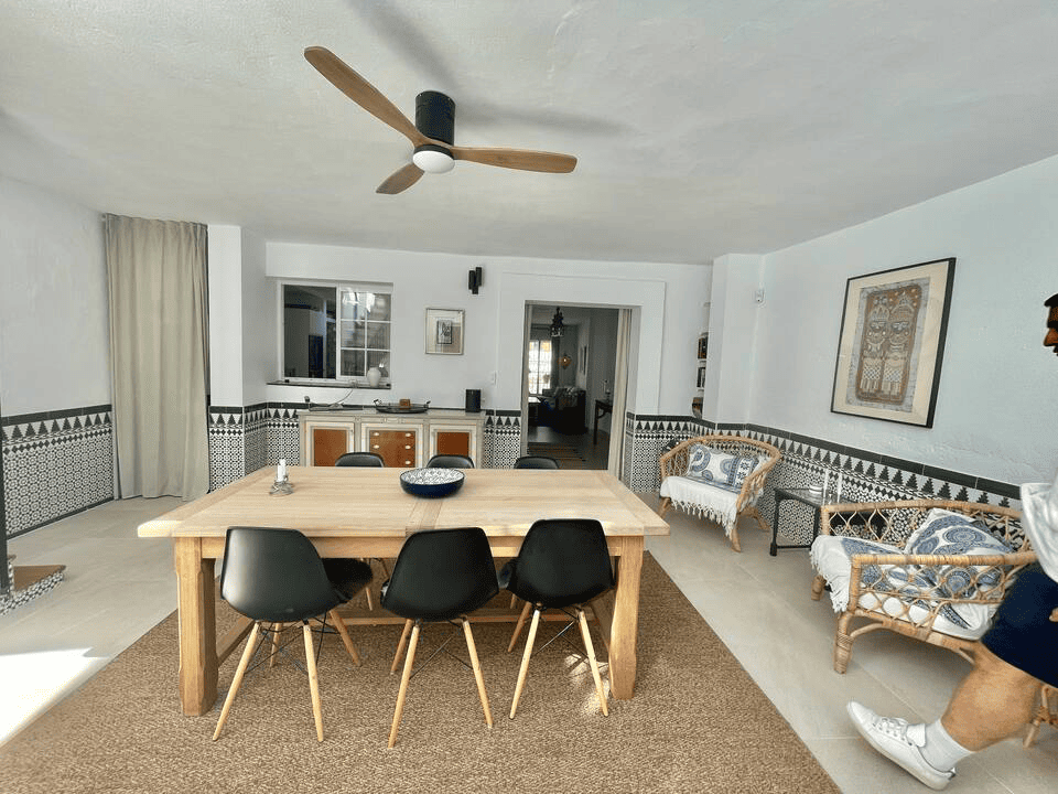This Unic Andalucian Style House is situated in very center of Estepona city , just 50 m from the nice beache and promenade. There are a lot of amenities in the old town area – cozy restaurantes, bars , small shops. There is also a supermarket very close by. The house has 2 floors with 3 bedrooms , 2 bathrooms, a guest toilet , a patio with dinning area, a modern fully equiped kitchen and a specious living room. On the rooftop we have a huge terrace with BBQ and lounge area.