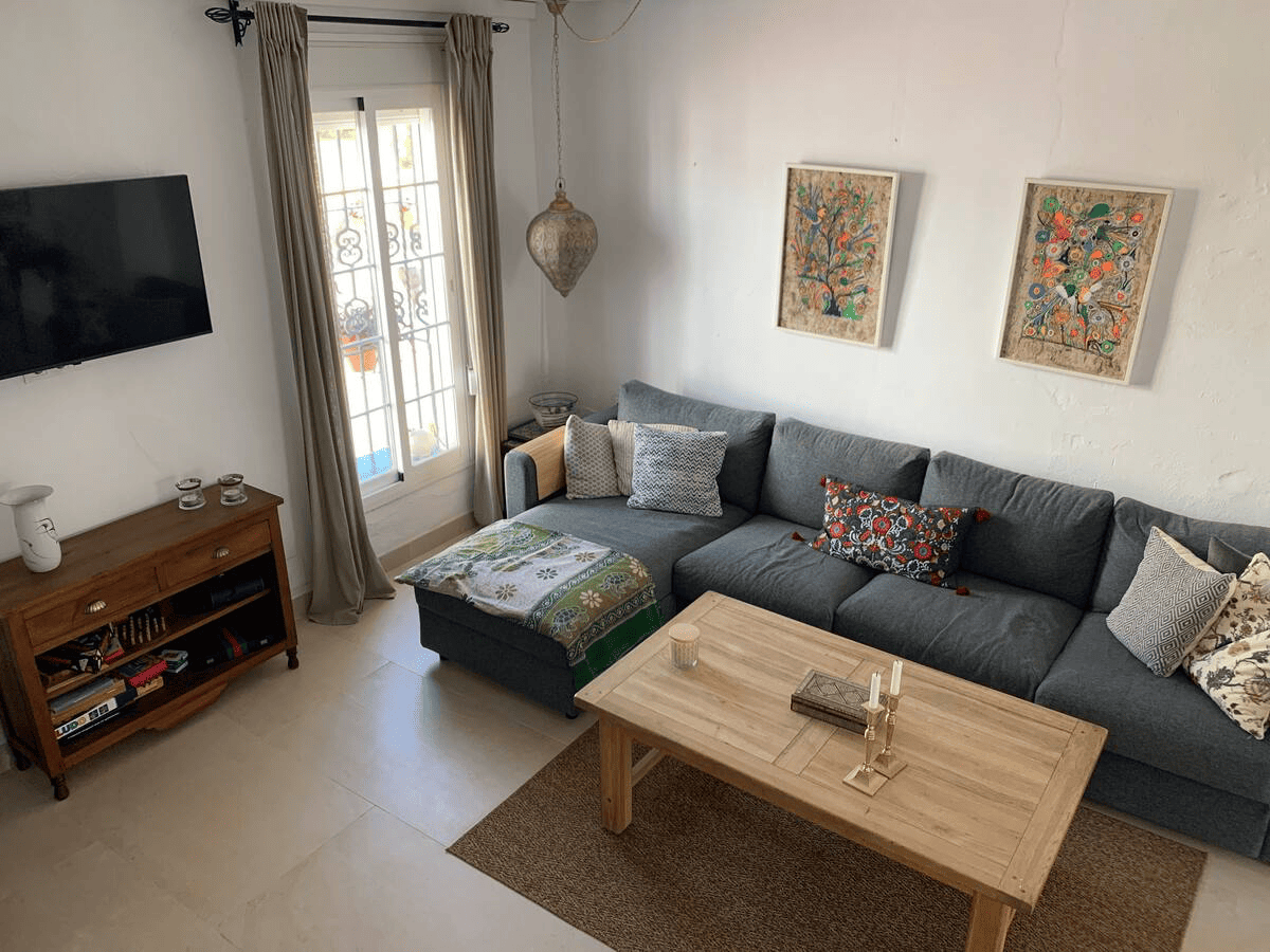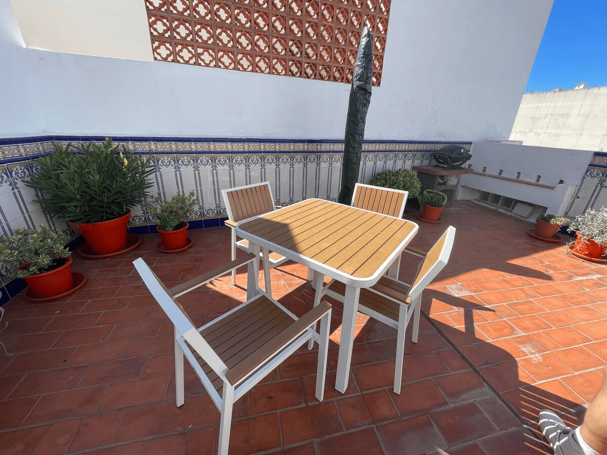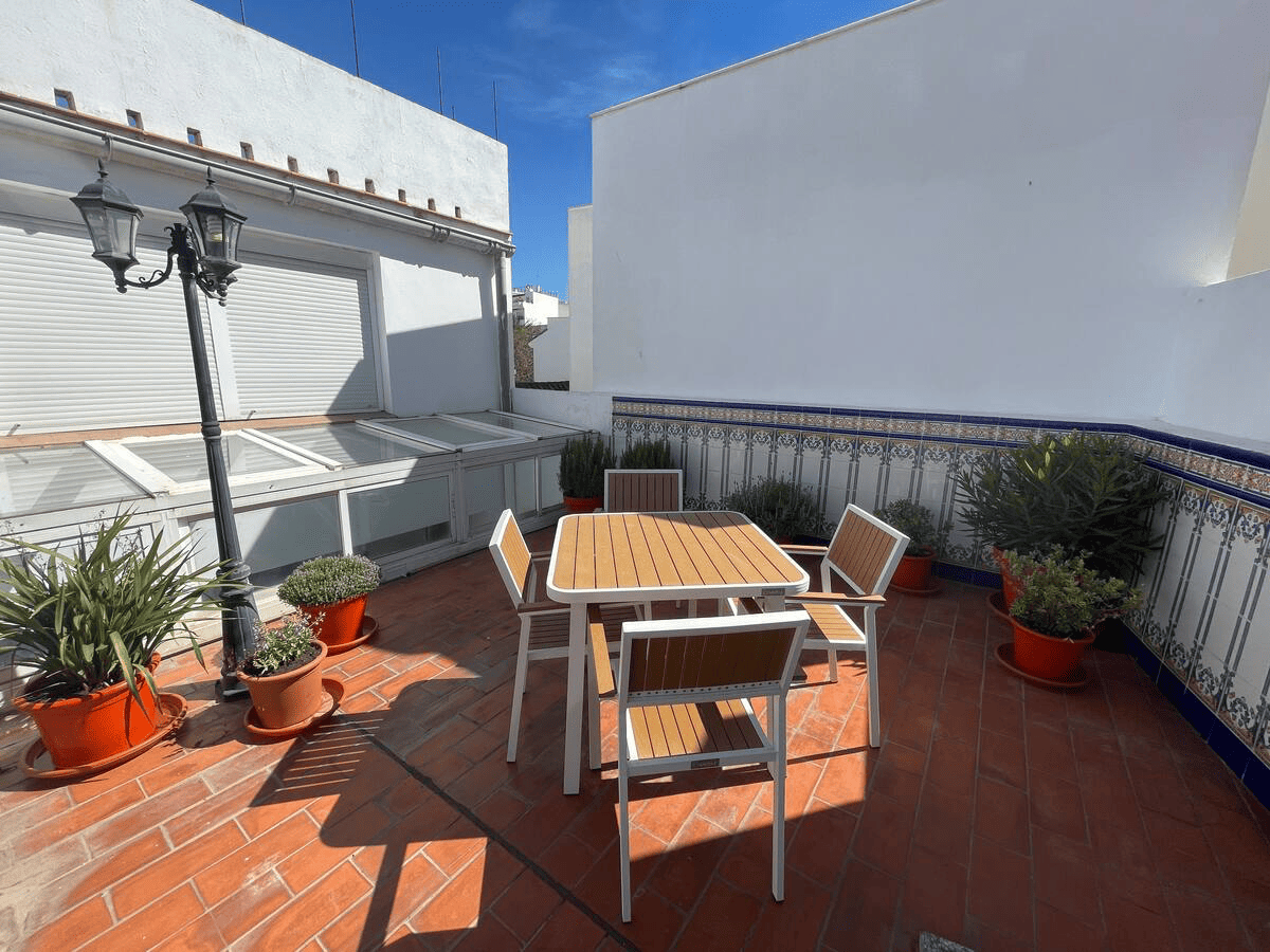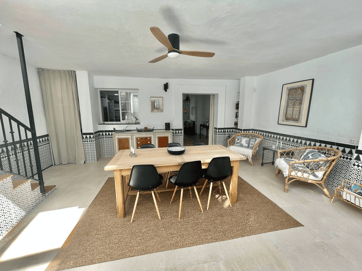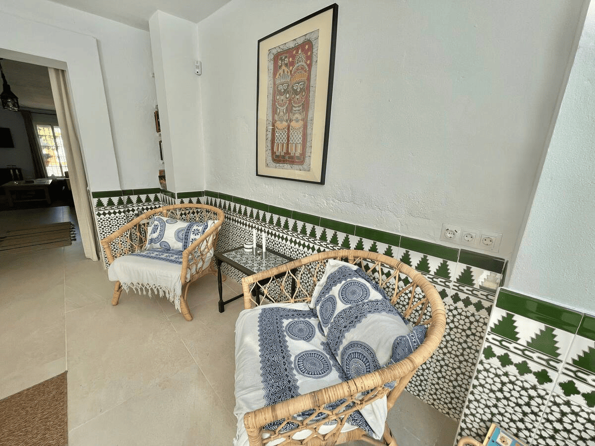 This Unic Andalucian Style House is situated in very center of Estepona city , just 50 m from the nice beache and promenade. There are a lot of amenities in the old town area – cozy restaurantes, bars , small shops. There is also a supermarket very close by. The house has 2 floors with 3 bedrooms , 2 bathrooms, a guest toilet , a patio with dinning area, a modern fully equiped kitchen and a specious living room. On the rooftop we have a huge terrace with BBQ and lounge area.