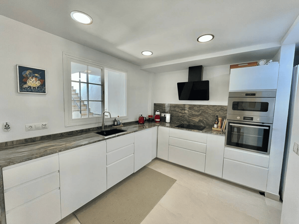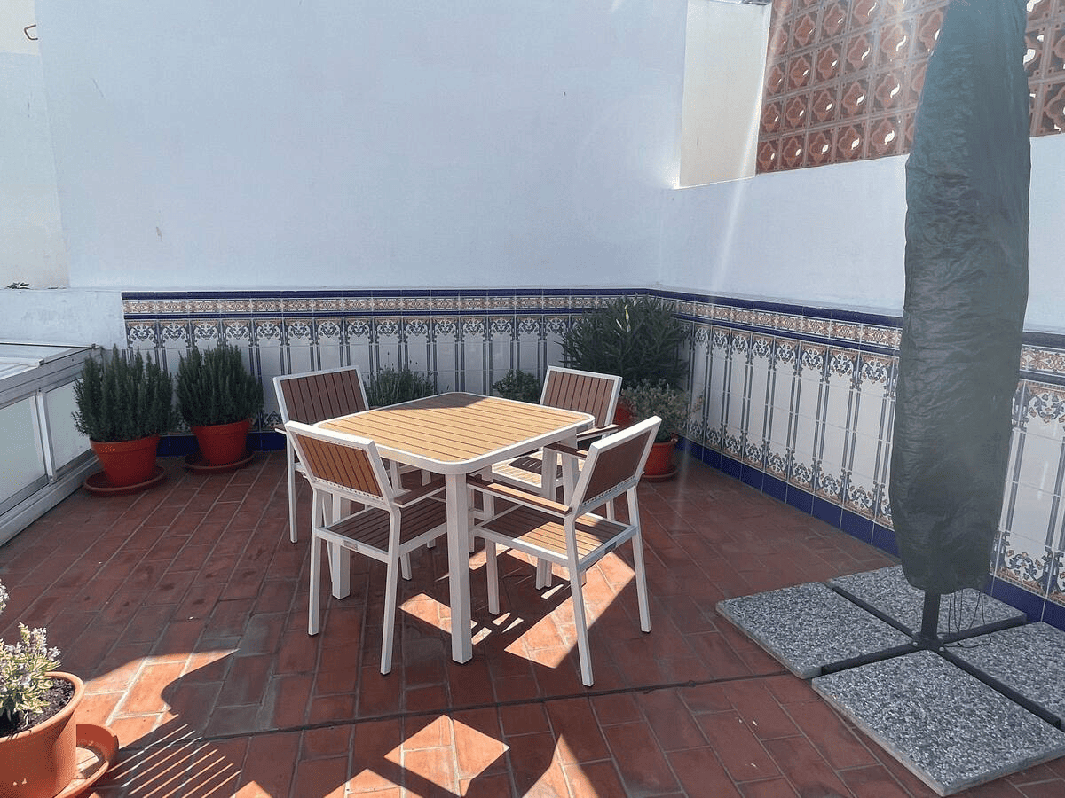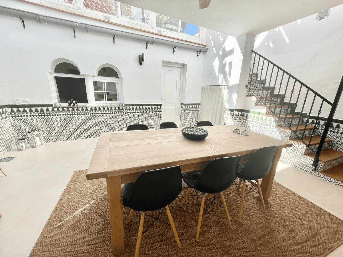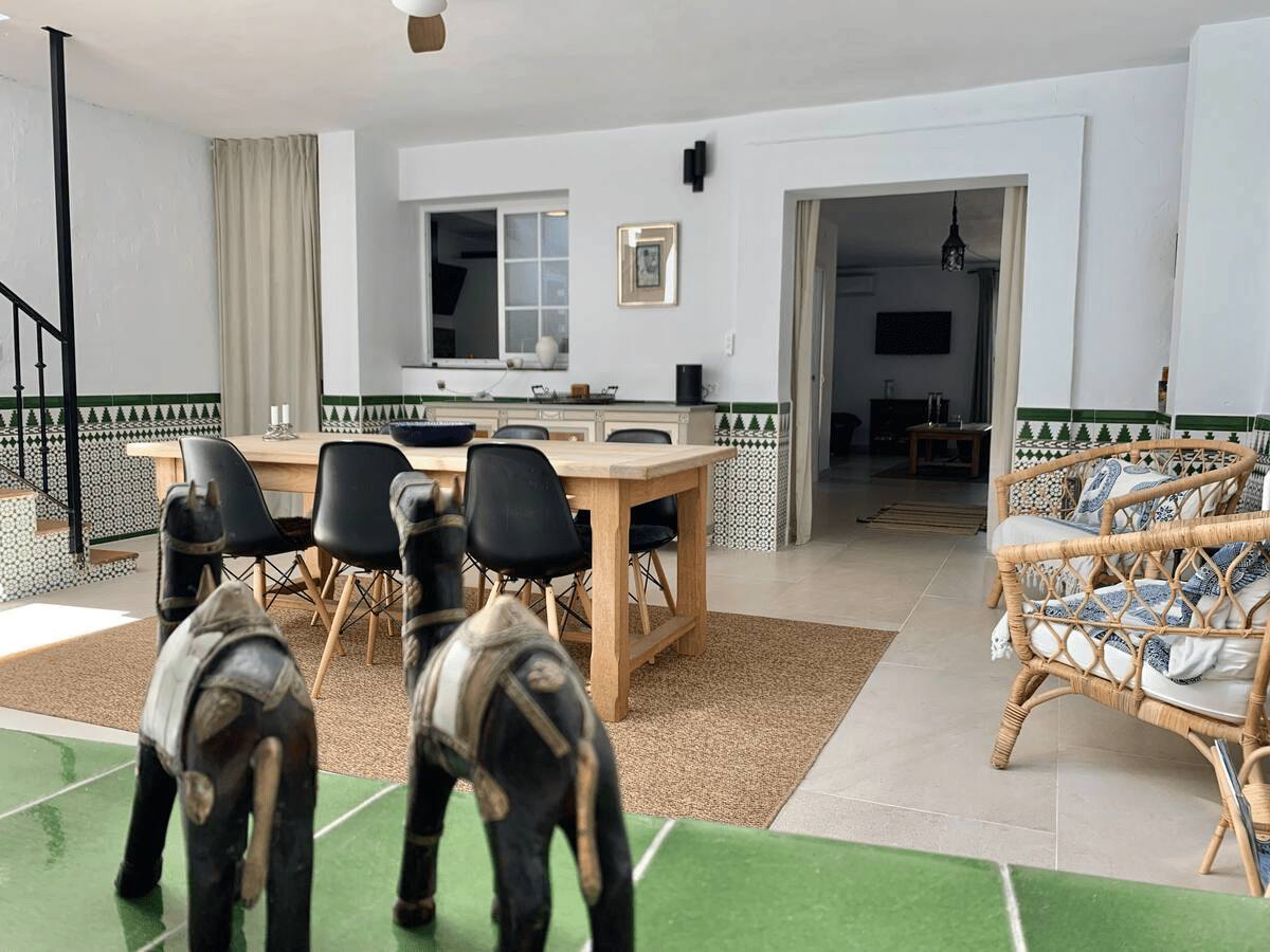 This Unic Andalucian Style House is situated in very center of Estepona city , just 50 m from the nice beache and promenade. There are a lot of amenities in the old town area – cozy restaurantes, bars , small shops. There is also a supermarket very close by. The house has 2 floors with 3 bedrooms , 2 bathrooms, a guest toilet , a patio with dinning area, a modern fully equiped kitchen and a specious living room. On the rooftop we have a huge terrace with BBQ and lounge area.