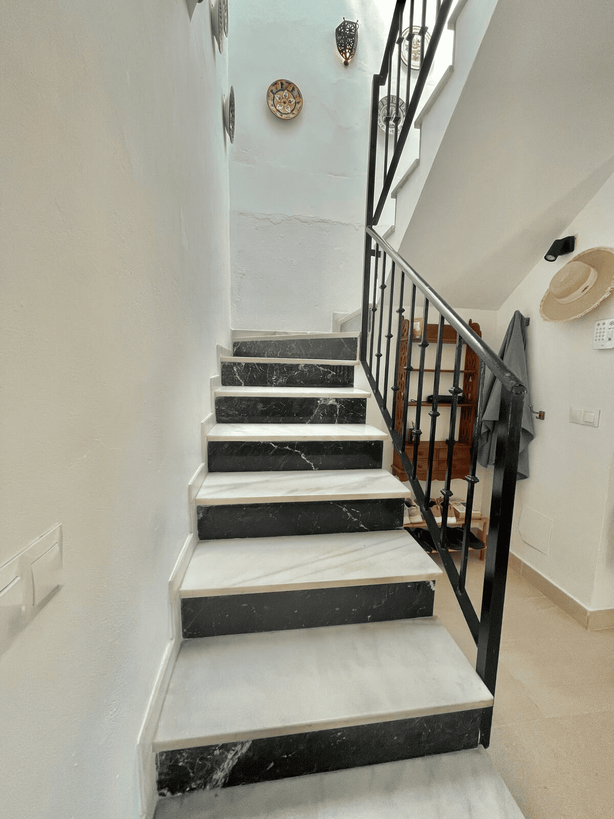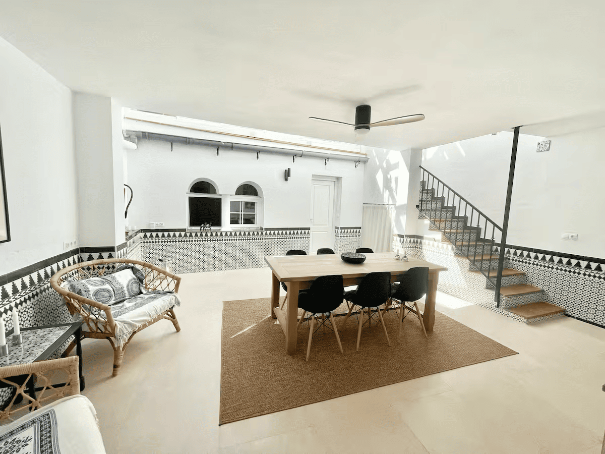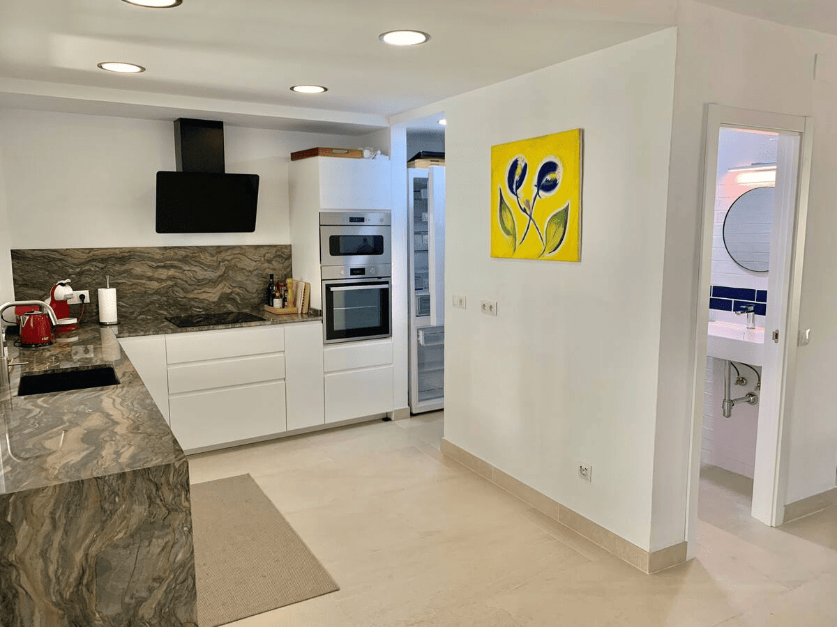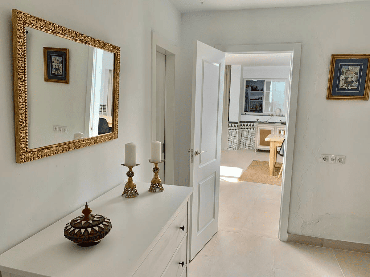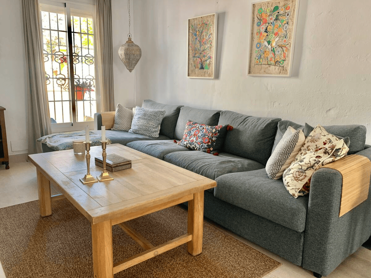 This Unic Andalucian Style House is situated in very center of Estepona city , just 50 m from the nice beache and promenade. There are a lot of amenities in the old town area – cozy restaurantes, bars , small shops. There is also a supermarket very close by. The house has 2 floors with 3 bedrooms , 2 bathrooms, a guest toilet , a patio with dinning area, a modern fully equiped kitchen and a specious living room. On the rooftop we have a huge terrace with BBQ and lounge area.